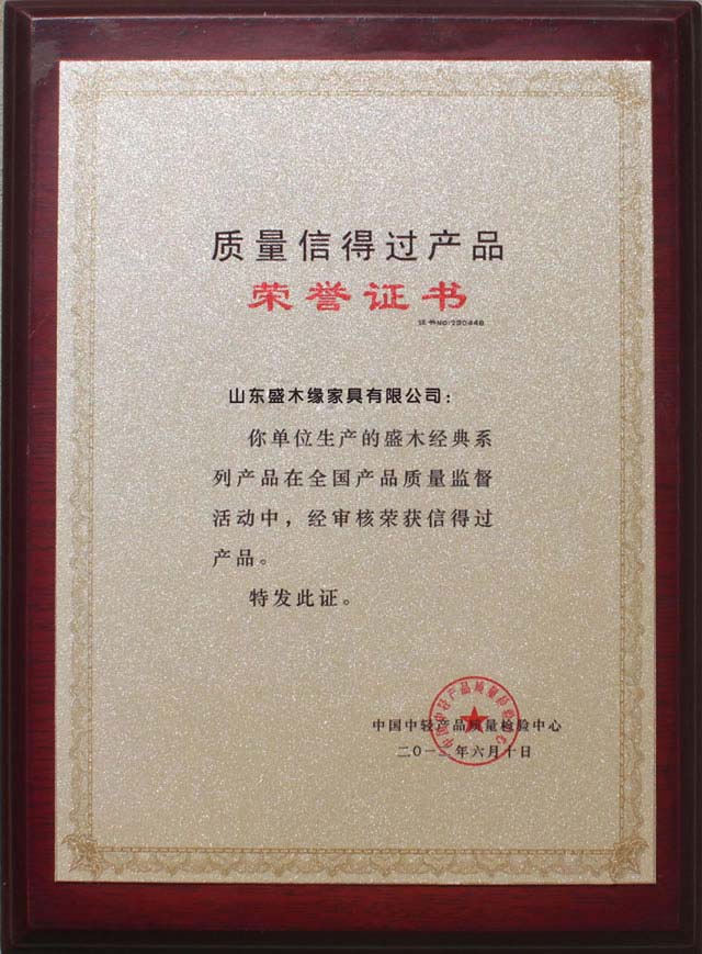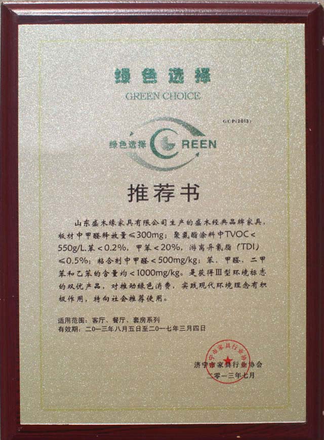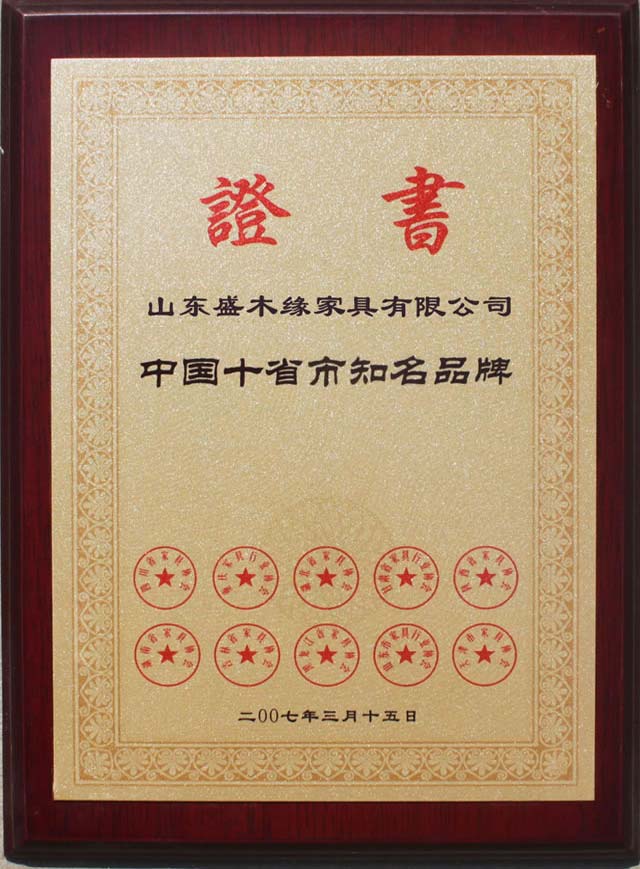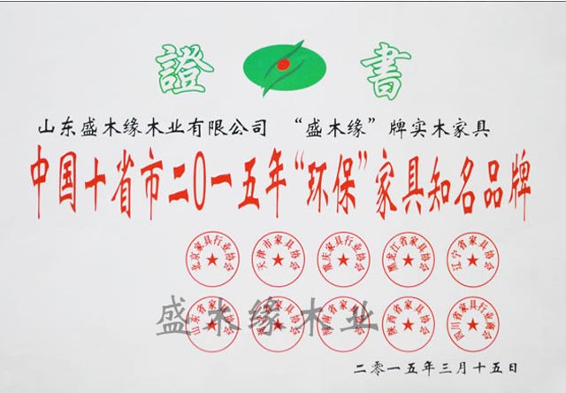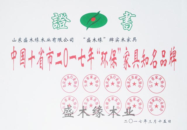 盛木緣家居先后榮獲了“中國(guó)十省市知名品牌、山東省林業(yè)龍頭企業(yè)、綠色選擇推薦、家具博覽會(huì)照片設(shè)計(jì)金銀獎(jiǎng)、山東家具行業(yè)設(shè)計(jì)創(chuàng)新先進(jìn)單位、AAA級(jí)資信等級(jí)證書、山東家具行業(yè)健康環(huán)保先進(jìn)單位、中國(guó)十省市2017年“環(huán)?!奔揖咧放?rdquo;等重要榮譽(yù),是業(yè)內(nèi)口碑品牌企業(yè)。